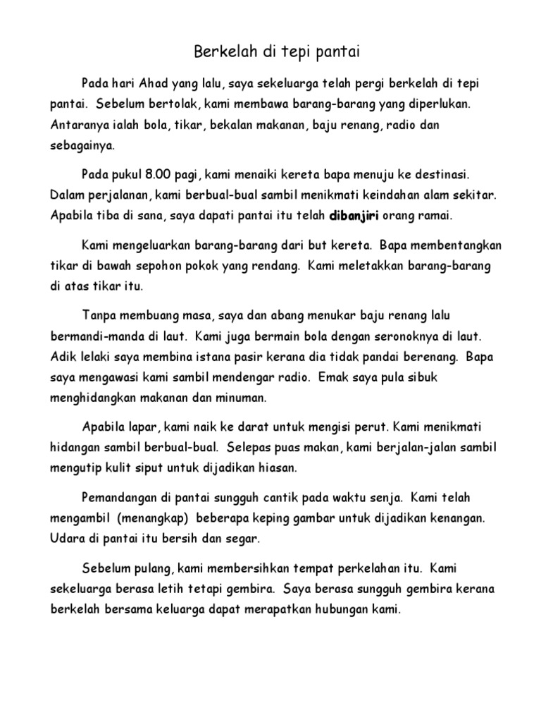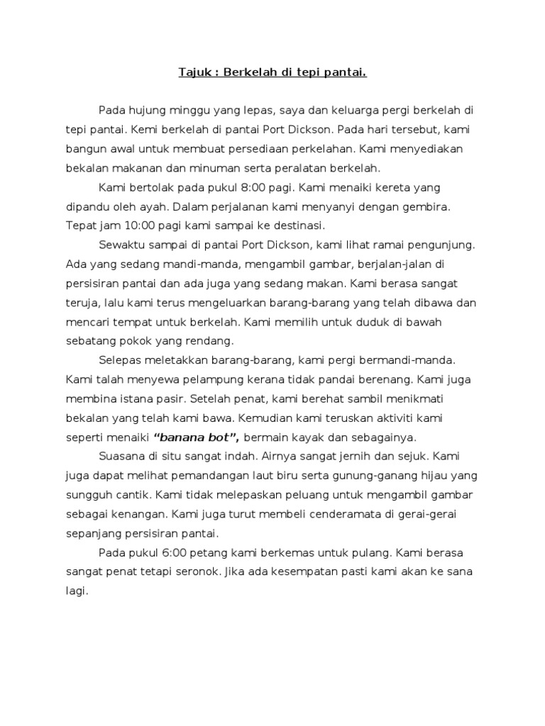 Contoh karangan berkelah di tepi pantai tahun 4. Selepas itu kami terus mencari tempat untuk berkelah. Terjemahan arab melayu arab 1 pppj1213 march 2017.