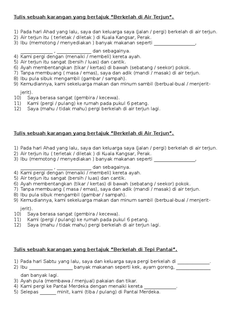 Berkelah di tepi pantai bina ayat. Bahasa Melayu BM Gradelevel. Berkelah di tepi sungai di kampung kgpdgbelon karangan karangankedah.